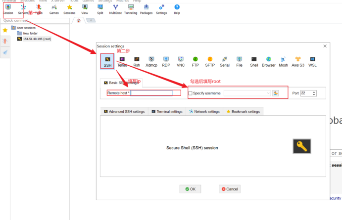3、输入主机IP和用户名